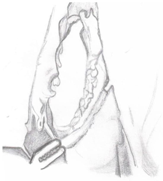 - Ureteral Tapering: The excess ureter is removed, and a neo-hiatus is created using an absorbable suture to maintain tension. The ureter is then tapered and sutured with simple monofilament sutures (Figure 4). The decision for ureteral tapering is approached intraoperatively with great caution. After dismembering, the ureteral diameter is measured, and tapering continues only if the ureteral diameter exceeds 2 cm, when a 4:1 tunnel length-to-diameter ratio cannot be achieved, or when functional impairment is present.Figure 4. Ureter tapering.