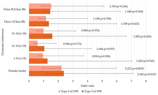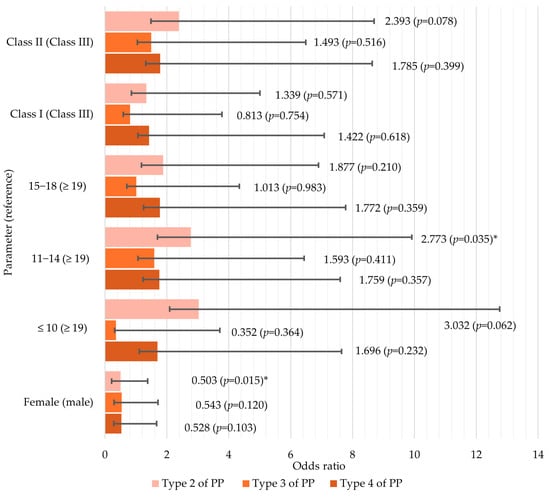 | Female | 68 (43.3) * | 85 (59.4) * | 0.005 | 85 (55.6) * | 38 (24.8) | 15 (9.8) | 15 (9.8) | 0.05 |