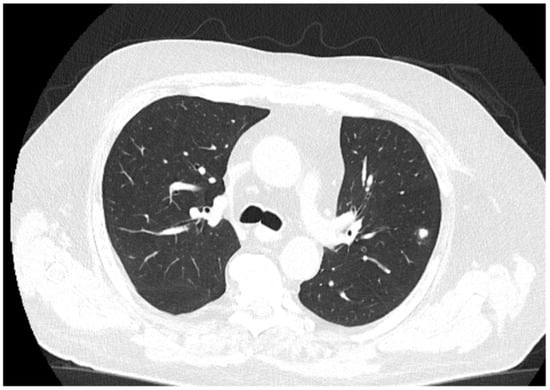 The patient received a follow-up brain MRI and chest CT (Figure 6) at 3 months, which showed complete remission of the brain abscess.