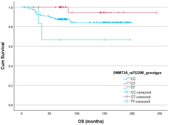 Kaplan–Meier survival curve for the association between DNMT3A rs752208 and OS.