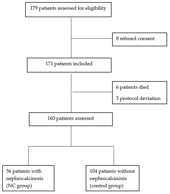 - Chang, H.Y.; Hsu, C.H.; Tsai, J.D.; Li, S.T.; Hung, H.Y.; Kao, H.A.; Chang, J.H.; Chung, H.Y.; Wang, H.K. Renal calcification in very low birth weight infants. Pediatr. Neonatol. 2011, 52, 145–149. [Google Scholar] [CrossRef] [PubMed]