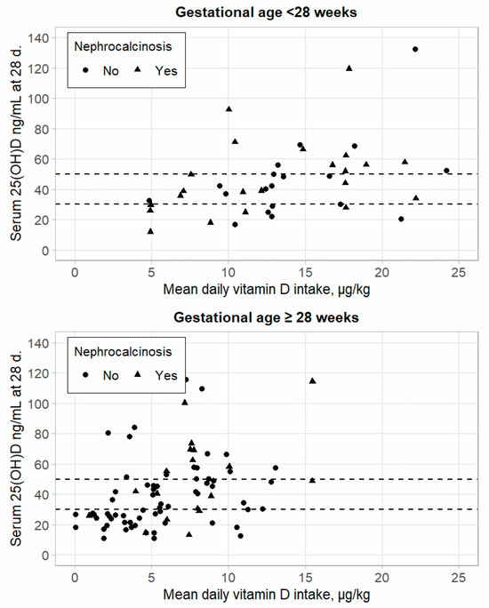- Adnan, M.; Wu, S.Y.; Khilfeh, M.; Davis, V. Vitamin D status in very low birth weight infants and response to vitamin D intake during their NICU stays: A prospective cohort study. J. Perinatol. 2022, 42, 209–216. [Google Scholar] [CrossRef]