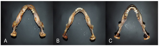 Figure 4. The mandibular shapes based on the LLI of the mandibular body: (A) leptogenia, (B) mesogenia, and (C) eurygenia.
