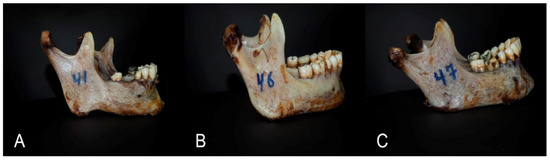 Informed consent was not obtained from the patients since this study used biological (cadaveric) material. The human mandibles were obtained from unidentified human bodies. The transfer of the biological material to Russia was carried out by the Decree of the Government of the Russian Federation of 21 July 2012, N 750 on approval of the rules for the transfer of an unclaimed body, organs, and tissues of a deceased individual for the medical, scientific, and educational purposes, as well as the use of an unclaimed body, organs, and tissues of a deceased individual for specified purposes (amendments and additions). An unclaimed body, organs, and tissues of a deceased individual, upon the occurrence of the circumstances stipulated by paragraph 1 of Article 12 of the Federal Law on burial and funeral business. Unclaimed bodies may be transferred for medical, scientific, and educational purposes to educational organizations implementing basic educational programs of secondary vocational education, higher education, and additional professional programs of medical or pharmaceutical education, scientific organizations, and medical organizations.