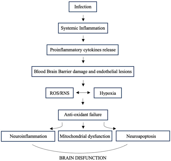 - Berg, R.M.G.; Møller, K.; Bailey, D.M. Neuro-oxidative-nitrosative stress in sepsis. J. Cereb. Blood Flow Metab. 2011, 31, 1532–1544. [Google Scholar] [CrossRef]