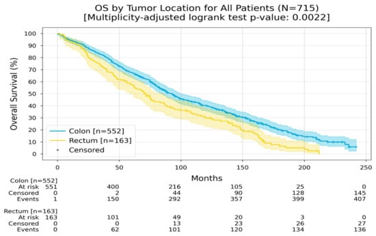 - Ryu, H.S.; Kim, J.; Park, Y.R.; Cho, E.H.; Choo, J.M.; Kim, J.-S.; Baek, S.-J.; Kwak, J.-M. Recurrence Patterns and Risk Factors after Curative Resection for Colorectal Cancer: Insights for Postoperative Surveillance Strategies. Cancers 2023, 15, 5791. [Google Scholar] [CrossRef] [PubMed] [PubMed Central]