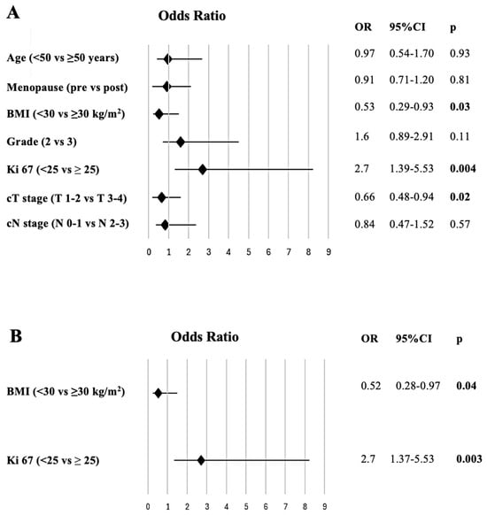 - Wang, H.; Zhang, S.; Yee, D.; Basu, S.; Beckwith, H.; Potter, D.; Blaes, A. Impact of body mass index on pathological complete response following neoadjuvant chemotherapy in operable breast cancer: A meta-analysis. Breast Cancer 2021, 28, 618–629. [Google Scholar] [CrossRef]
