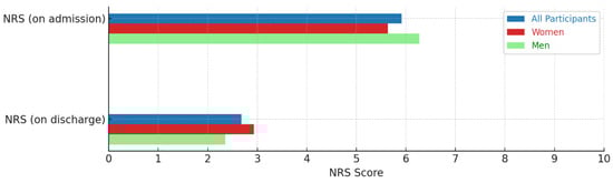 | NRS (on discharge) | 2.68 (0–9) | 2.93 (0–9) | 2.36 (0–7) |