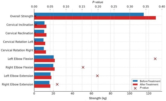 | Muscle Group | Before Treatment (kg) | After Treatment (kg) | p-Value |