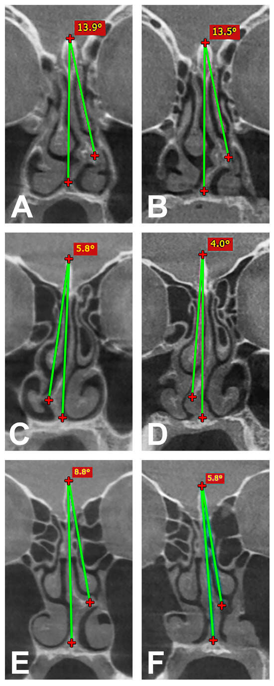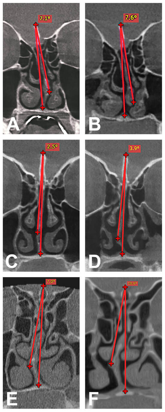 - de Paula, S.B.S.; Nunes, L.A.; de Oliveira Ruellas, A.C.; de Castro, A.C.R. Influence of nasal septum deviation on fluctuating asymmetries of the nasomaxillary complex: A cross-sectional study. J. Anat. 2022, 241, 1273–1286. [Google Scholar] [CrossRef]