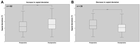 | (n = 62) | Increase in NSD (°) | (n = 35) | Decrease in NSD (°) | ||
