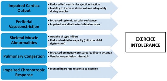 Exercise intolerance is a cardinal feature of heart failure with reduced ejection fraction (HFrEF) and is a major contributor to the poor quality of life in these patients. The inability to perform even moderate physical activity is one of the most common complaints among individuals with HFrEF and is a critical predictor of adverse outcomes. This exercise intolerance results from a combination of central and peripheral mechanisms that interact to limit the cardiovascular system’s ability to respond adequately to physical exertion [22].