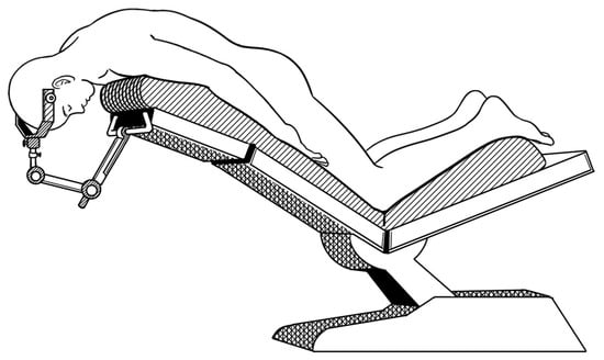 Modified prone positioning, as performed in the current study. The patient is placed in a prone position, with the patient’s head elevated above the level of the heart. Usually, a Wilson frame is placed under the patient’s upper body, but in this figure, the frame is not drawn.
