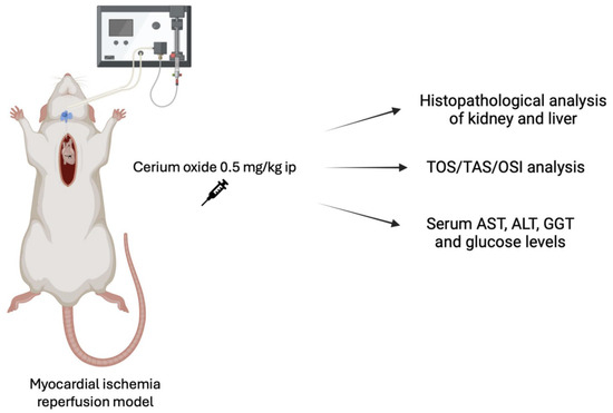 In this study conducted on rats, the effect of intraperitoneal cerium oxide administered before left main coronary artery ischemia on kidney and liver damage due to myocardial ischemia reperfusion injury was investigated.