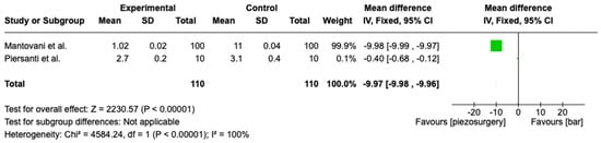 | Mantovani et al. [27] | 2014 | 100 patients | According to Pell and Gregory’s classification, split-mouth, only Class A or B and in position 1, 2, or 3. Bilaterally had to be similar. | Pain with the VAS; noise; swelling at 2, 7, 14, and 28 days | Results on swelling. Control: 1.10; Study: 1.02. | This study showed a statistically significant decrease in the group with piezoelectric surgery |