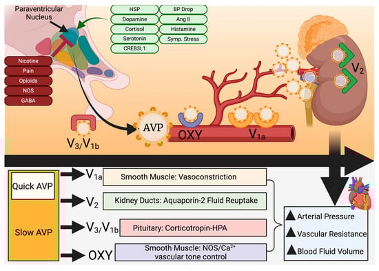 - Szczepanska-Sadowska, E.; Wsol, A.; Cudnoch-Jedrzejewska, A.; Żera, T. Complementary Role of Oxytocin and Vasopressin in Cardiovascular Regulation. Int. J. Mol. Sci. 2021, 22, 11465. [Google Scholar] [CrossRef]