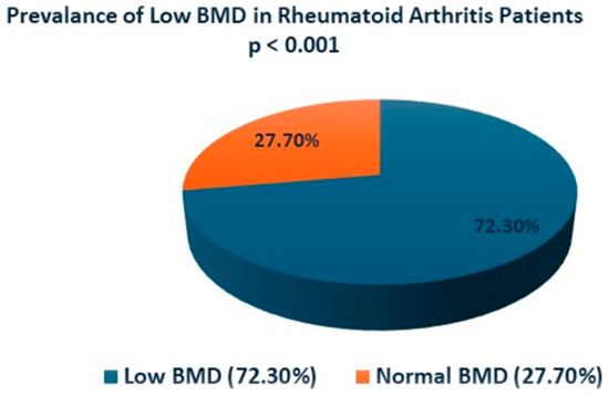 Prevalence of low BMD in RA patients.
