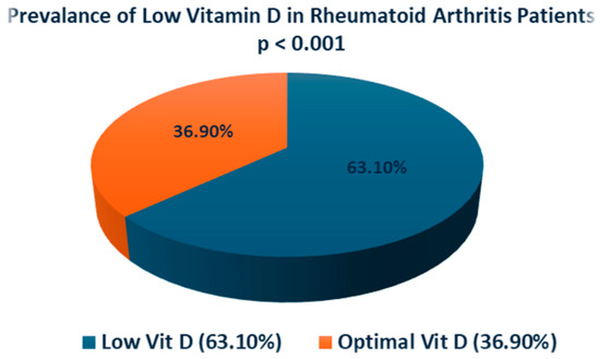 Prevalence of low vitamin D in RA patients.
