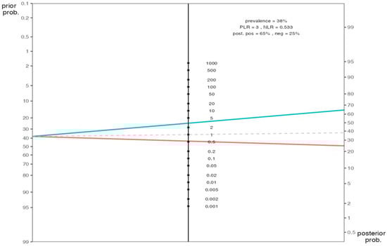 Post-test probability ratios (likelihood ratio) of the HALP score. prob, probability; PLR, positive likelihood ratio; NLR, negative likelihood ratio; post, posterior; pos, positivity; neg, negativity.