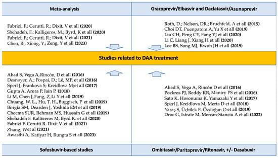 We also found numerous studies addressing DAA treatment in HCV(+) patients undergoing HD therapy (Table 12).