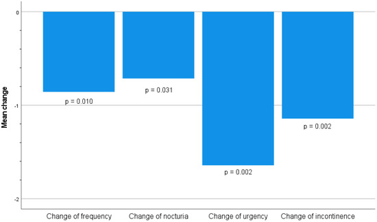 Within the statistically significant decrease in overall symptomatology after the treatment, it should be emphasized that the biggest difference was observed in the symptom of urgency (Figure 4).