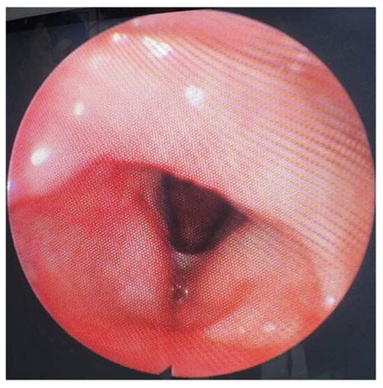 The patient did not display any breathing, phonatory, or deglutition problems. The flexible video laryngoscopy undertaken at 12 months showed us that the larynx was covered by normal mucosa, with preserved mobility of the vocal folds and no sign of relapse or any scarring postoperatively (Figure 8).