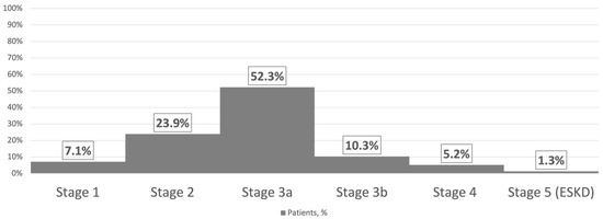 Patients with a glomerular filtration rate of 90 mL/min or in the range 60–90 mL/min and no other signs of chronic kidney damage, e.g., proteinuria, hematuria, pathological kidney biopsy or imaging results, as well as patients with a first-time documented decrease in glomerular filtration rate and patients with acute kidney failure, were excluded from this study.