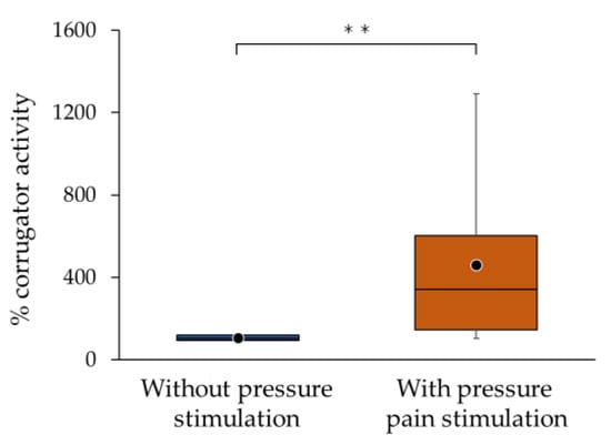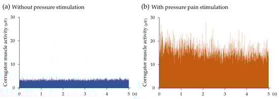 3.2. Corrugator Muscle Activity without and with Pressure Pain Stimulation