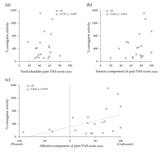 Yamada, T.; Yajima, H.; Takayama, M.; Imanishi, K.; Takakura, N. Corrugator Muscle Activity Associated with Pressure Pain in Adults with Neck/Shoulder Pain. Medicina 2024, 60, 223. https://doi.org/10.3390/medicina60020223