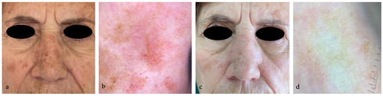 - Eisen, D.B.; Asgari, M.M.; Bennett, D.D.; Connolly, S.M.; Dellavalle, R.P.; Freeman, E.E.; Goldenberg, G.; Leffell, D.J.; Peschin, S.; Sligh, J.E.; et al. Guidelines of Care for the Management of Actinic Keratosis. J. Am. Acad. Dermatol. 2021, 85, e209–e233. [Google Scholar] [CrossRef] [PubMed]