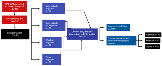 Illustrates the workflow of this in vitro experiment. Includes the guide’s design and fabrication, sample sizes, and thermal evaluation.