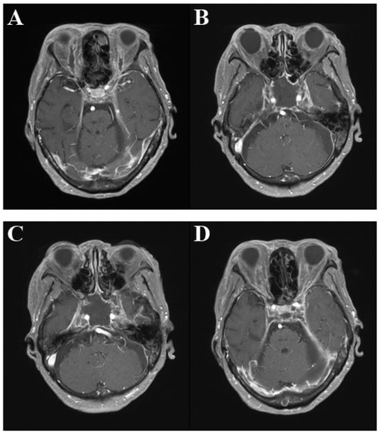 Despite advancements in diagnostic methodologies and the availability of broad-spectrum antibiotics, SCST remains a formidable intracranial infectious condition with a high mortality rate. Historical data from Southwick [] and Yarington [] indicate mortality rates of 50% and 80%, respectively. The recent literature on SCST, even in the antibiotic era, reports a mortality rate exceeding 20% []. In our patient, despite administering broad-spectrum antibiotics (ceftriaxone combined with vancomycin) for source control of the intracranial infection and implementing anticoagulant therapy, the patient’s condition continued to deteriorate significantly. This outcome underscores the complexity and severity of SCST and highlights the challenges in managing this life-threatening condition.