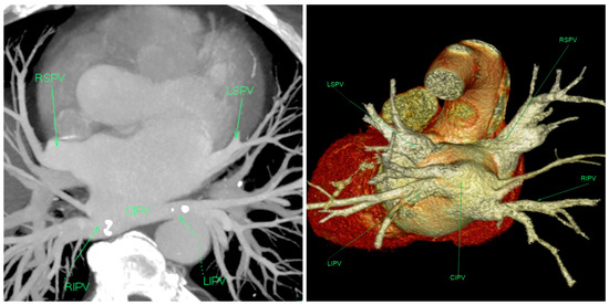 - Canpolat, U.; Yorgun, H.; Hazirolan, T.; Aytemir, K. Common ostium of inferior pulmonary veins: An extremely rare variant described by preprocedural computerized tomography angiography. J. Arrhythm. 2021, 19, 450–451. [Google Scholar] [CrossRef] [PubMed]