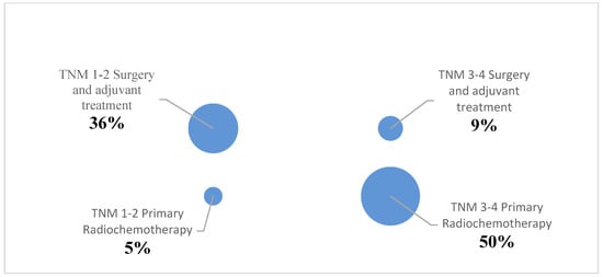 Subdivision of all post-therapeutic patients based on tumor size and location.