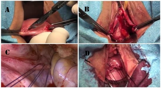 Vaginal native-tissue techniques comprehend sacrospinous ligament (SSL) fixation, iliococcygeus fascia (ICF) fixation, levator myorrhaphy (LM), and uterosacral ligament (USL) suspension. SSL fixation is one of the most popular transvaginal techniques for VVP repair. First described by Sederl in 1958, this technique implies the suspension of vaginal apex to sacrospinous ligaments either unilaterally or bilaterally []. The surgical repair of apical prolapse can be achieved using the sacrospinous ligament (SSL), especially if minimal invasiveness and effectiveness are desired. Indeed, compared to abdominal sacrocolpopexy and vaginal hysterectomy with uterosacral ligament suspension, this approach seems to be less extensive and less expensive both from the point of view of the operation time and the recovery of the patient, as the time before a return to daily routine activities is shorter. Moreover, this technique seems to have fewer complications than abdominal sacrocolpopexy and vaginal hysterectomy with uterosacral ligament suspension. Currently, there are different vaginal surgical approaches described to access the SSL to enable the suspension of the vaginal cuff. The classical Amreich–Richter technique involves the direct visualization of the SSL []. This technique requires a posterior colpotomy, and then that the rectal stalk is bluntly penetrated and prepared up to the ischial spine, just for obtaining a good exposition of the sacrospinous ligament to correctly place 2–3 sutures. So, the vaginal vault is included subepithelially and the sutures are tied on the sacrospinous ligament. The need for an optimal visualization of the SSL sometimes can be technically challenging due to the deep vaginal dissection which is required []. This critical issue can be overcome by the so called “blunt and blind” dissection method, which targets the midpoint of the SSL. This technique seems to be useful in order to reduce the risk of infection and bleeding associated with the previously described approach. The placed sutures can be used for direct attachment of the vaginal vault to the SSL, as well as indirect fixation with the use of mesh implants. The closed SSL fixation represents a more recent development in which the surgeon palpates the SSL transvaginally and anchors the suture through the vagina without surgical dissection of the pararectal space down to the ligament. This suture is then used for vaginal vault suspension. Hemorrhage is rare due to the fact that wide dissection is avoided, and mesh complications are omitted thanks to the employ of sutures only []. Again, sacrospinous ligament suspension, although it has been demonstrated to be successful in suspending the prolapsed vaginal vault, has been unfortunately associated with postoperative rates of cystocele formation in 18–92% [,].