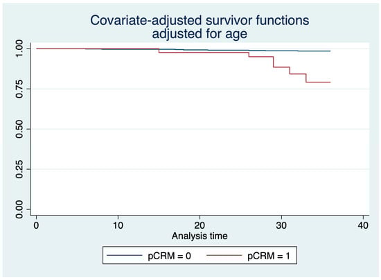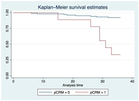 | Variable | pCRM Positive (Group 1, n = 9 Patients) | pCRM Negative (Group 2, n = 103 Patients) | p Value |