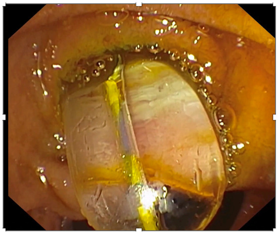 - Bokun, T.; Tadic, M.; Kurtcehajic, A.; Grgurevic, I.; Kujundzic, M. Broken handle cord of impacted biliary basket—Rescue by cholangioscopy with laser lithotripsy. Endoscopy 2020, 52, E459–E460. [Google Scholar] [CrossRef]