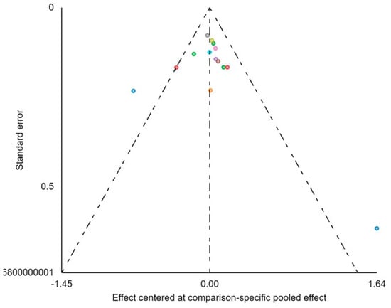 Additionally, Figure 7 reports a funnel plot, providing a visual representation of the data’s distribution and aiding in the assessment of potential publication bias.