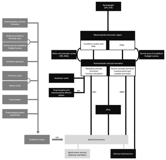 15]. Another interesting fact is that some muscle tone and postural regulation occur by the medial frontal cortex, which projects to the brainstem reticular formation [