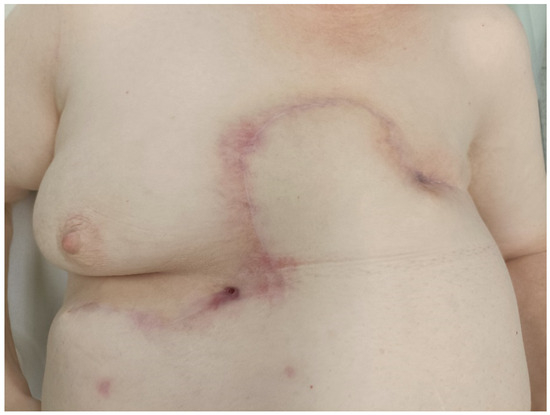 3. Park, J.S.; Ahn, S.H.; Son, B.H.; Kim, E.K. Using local flaps in a chest wall reconstruction after mastectomy for locally advanced breast cancer. Arch. Plast Surg. 2015, 42, 288–294. [Google Scholar] [CrossRef] [PubMed]