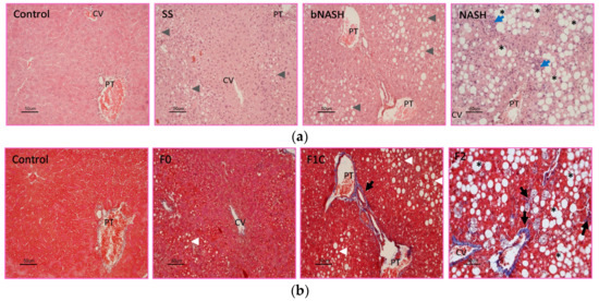 - Kleiner, D.E.; Brunt, E.M.; Van Natta, M.; Behling, C.; Contos, M.J.; Cummings, O.W.; Ferrell, L.D.; Liu, Y.-C.; Torbenson, M.S.; Unalp-Arida, A.; et al. Design and validation of a histological scoring system for nonalcoholic fatty liver disease. Hepatology 2005, 41, 1313–1321. [Google Scholar] [CrossRef] [PubMed]