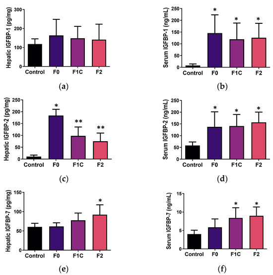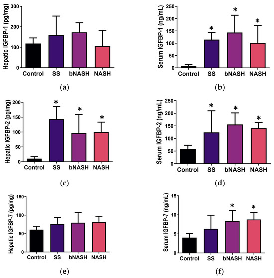 - Hagström, H.; Stål, P.; Hultcrantz, R.; Brismar, K.; Ansurudeen, I. IGFBP-1 and IGF-I as markers for advanced fibrosis in NAFLD—A pilot study. Scand. J. Gastroenterol. 2017, 52, 1427–1434. [Google Scholar] [CrossRef]