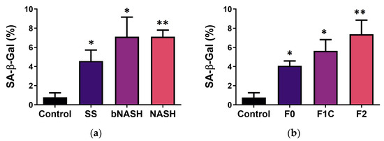 - Aravinthan, A.; Scarpini, C.; Tachtatzis, P.; Verma, S.; Penrhyn-Lowe, S.; Harvey, R.; Davies, S.E.; Allison, M.; Coleman, N.; Alexander, G. Hepatocyte senescence predicts progression in non-alcohol-related fatty liver disease. J. Hepatol. 2013, 58, 549–556. [Google Scholar] [CrossRef] [PubMed]