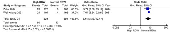 Chicago/Turabian StyleNguyen, Bao Tu Thai, Duy Nguyen Anh Tran, Tan Thanh Nguyen, Yi-Jie Kuo, and Yu-Pin Chen. 2024. "The Association between Red Blood Cell Distribution Width and Mortality Risk after Hip Fracture: A Meta-Analysis" Medicina 60, no. 3: 485. https://doi.org/10.3390/medicina60030485