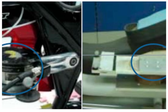 The installation position of the ATI on a stationary bicycle and elliptical machine, as well as the adhesive location of the reflective ball. Note: The portion circled in blue is the ATI.