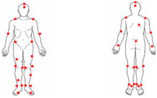- Hubley-Kozey, C.L.; Backman, C.L. Joint Contact Loading in the Lower Extremities during Walking in Young Adults with and without Knee Pain. Phys. Ther. 2008, 88, 707–716. [Google Scholar]