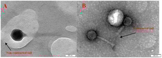 Morphological characterization of isolated phages was performed via a Hitachi transmission electron microscope H-9500 (Tokyo, Japan) at the Faculty of Science, Al-Azhar University, Cairo, Egypt. The phage samples were prepared and examined by TEM [27].