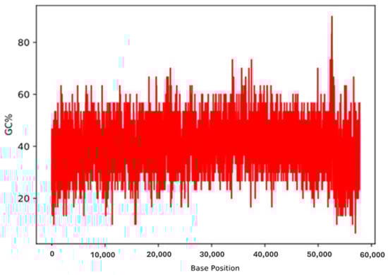 GC content distribution in the genome of Enterococcus phage.