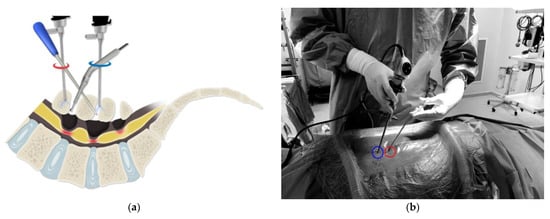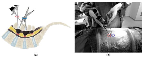 - Dai, J.; Liu, X.-F.; Wang, Q.-L.; Peng, Y.-J.; Zhang, Q.-Z.; Jiang, F.-X.; Yan, J. A new method for establishing operative channels in unilateral biportal endoscopic surgery: Technical notes and preliminary results. J. Back Musculoskelet. Rehab. 2023, 36, 367–375. [Google Scholar] [CrossRef] [PubMed]