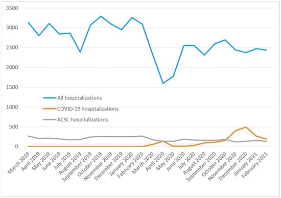 3.2. Timeline of All Hospitalizations, ACSC Hospitalizations, and COVID-19 Hospitalizations